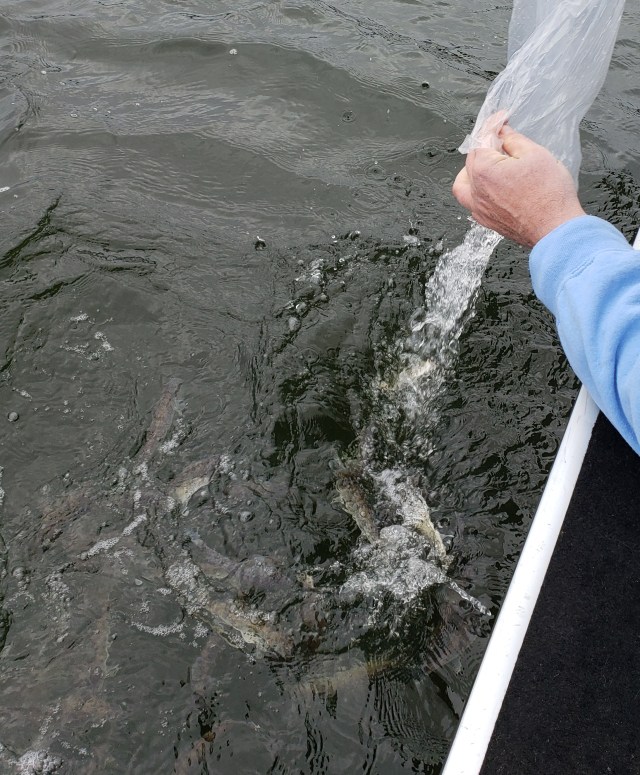 The DEC granted a fish stocking permit for the lake in June of this year. The permit is good for 5 years. The association purchased 400, 6-8 inch walleye from Phil Faber at Naples Aquaculture. Tim Harrison captained his boat and Phil and I stocked the lake at various points.