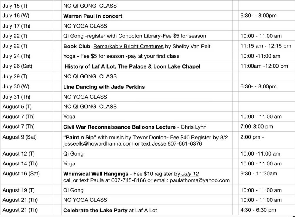 Chairpersons- Lisa Oyer -607-738-9041 and Sue New – 607-382-7275
