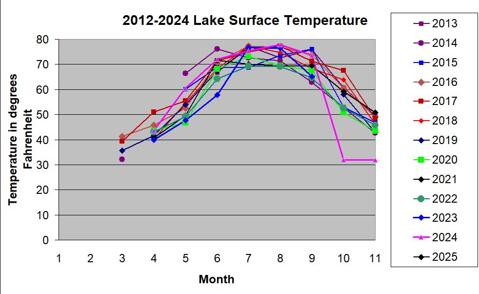 Note that I have added a graph of the lake temperature at the surface over the years 2012-2024 by month.