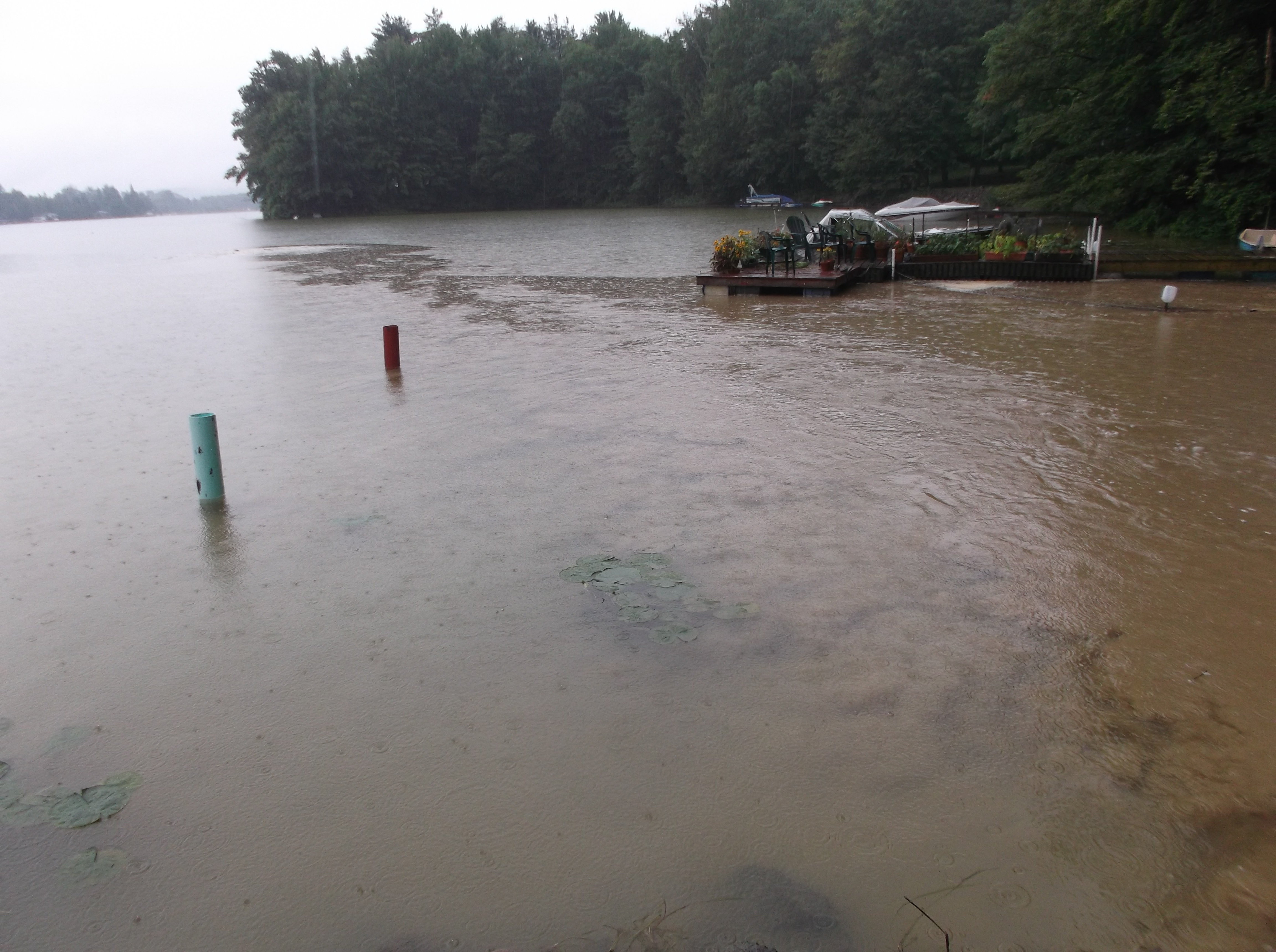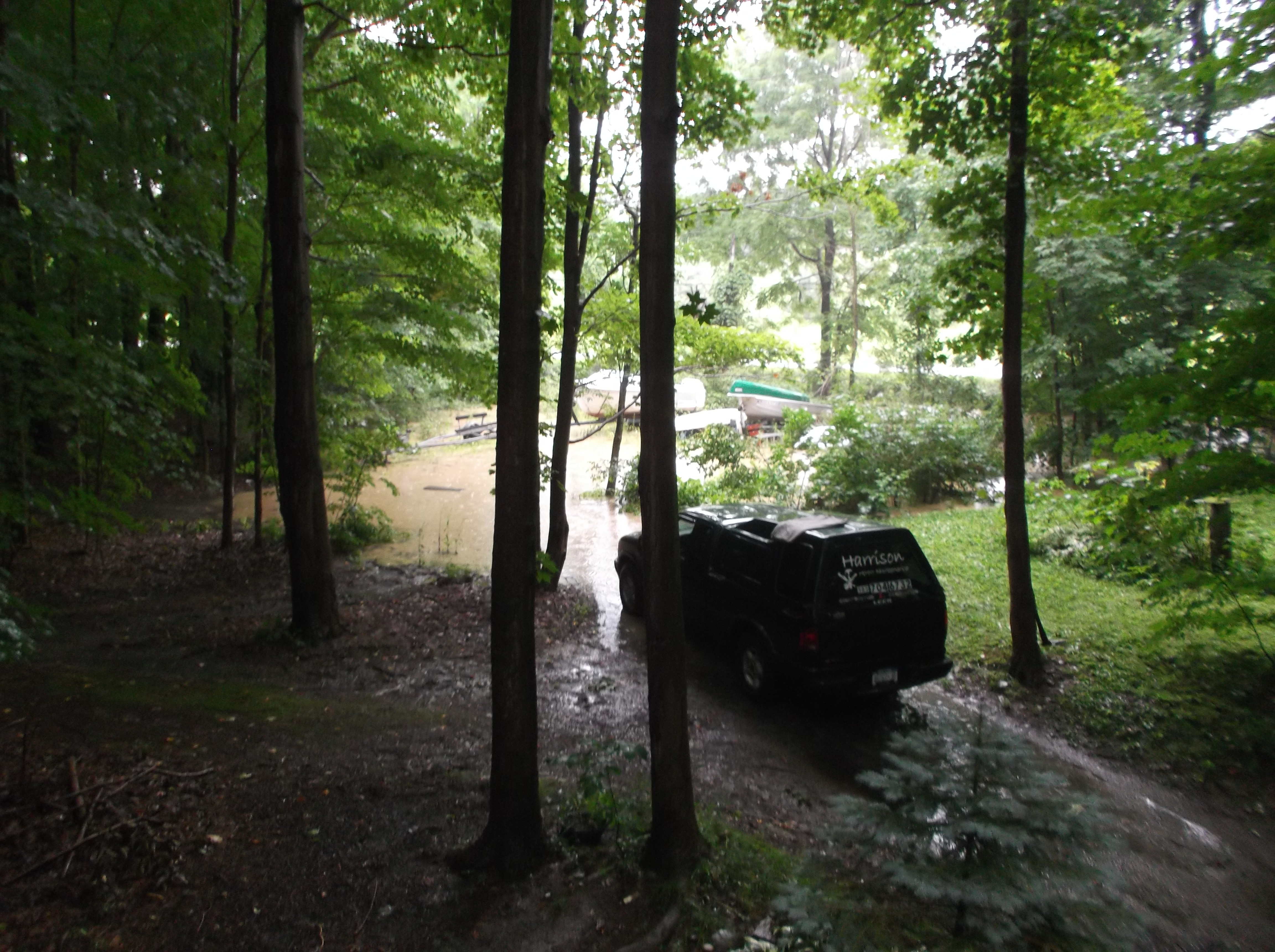 Antler’s Inn Road flood pictures. Water damage occurred when the Harrison’s basement was flooded. A lot of soil and other contaminants ended up in the lake. The Harrison’s had to undertake a lot of cleanup of debris.