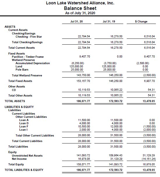 Balance Sheet for fiscal Year Ending July 31, 2020