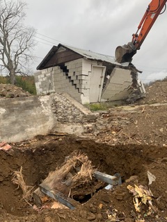 Stan and Karen Wisniewski and crew finished the barn dismantlement and recycling in October, 2019. Mike Landino demolished the milk house on 10/14/19.