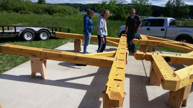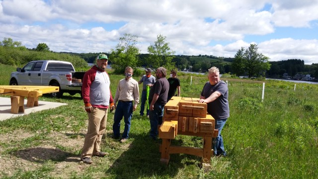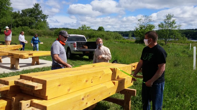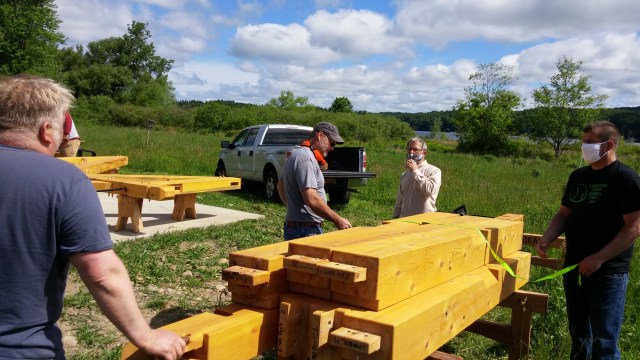 While Rob Hughes designed the pavilion for free and he and his students will erect it for free, the LLWIA will have to pay for the concrete pad (shown below with Mike Landino and crew), the lumber and the roof. The preliminary estimated cost for all of this is $20,000.