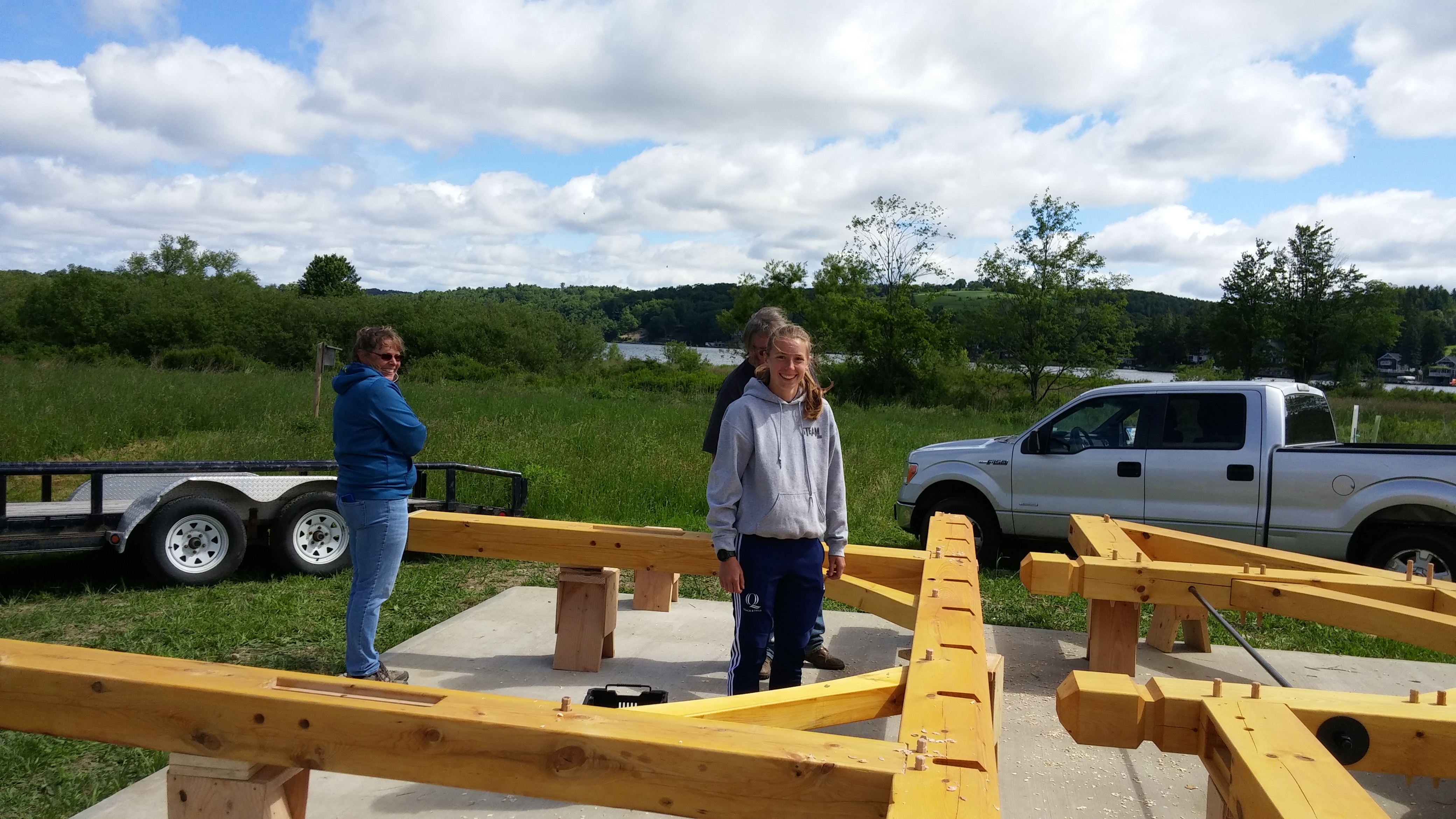 While Rob Hughes designed the pavilion for free and he and his students will erect it for free, the LLWIA will have to pay for the concrete pad (shown below with Mike Landino and crew), the lumber and the roof. The preliminary estimated cost for all of this is $20,000.