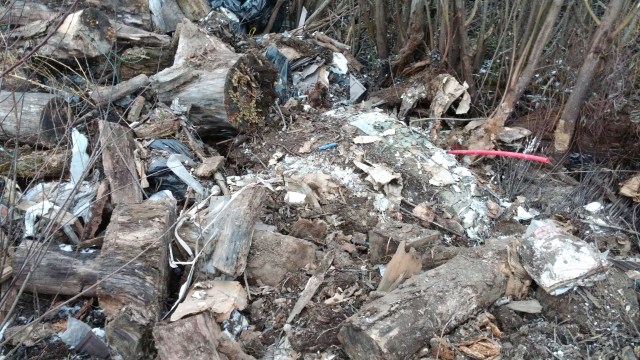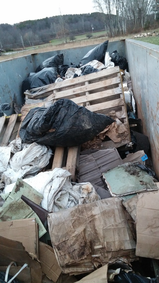 Volunteer workers filled half of this dumpster with trash. Steuben County workers, using heavy equipment then filled 23 additional truckloads with more trash!!! The trucking was provided by the Town of Wayland.
